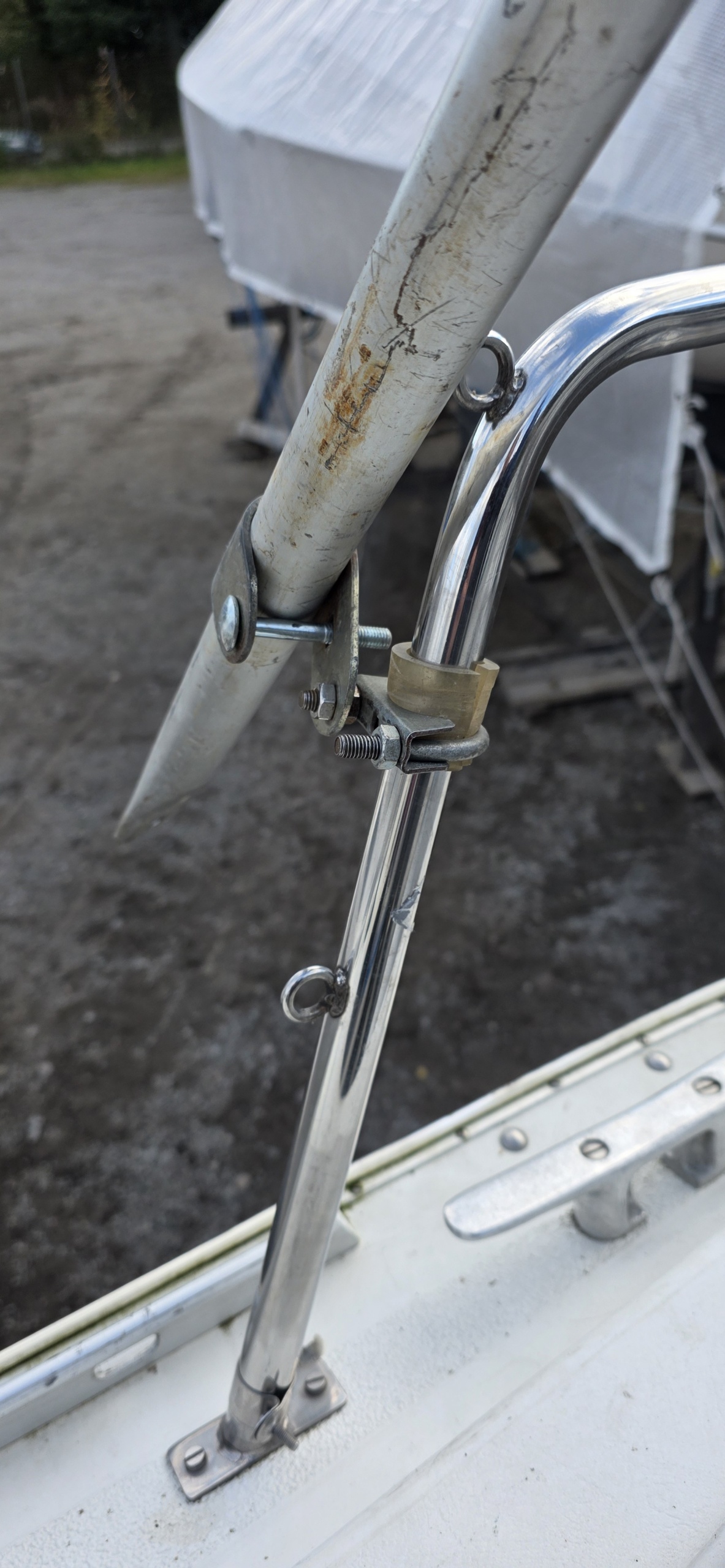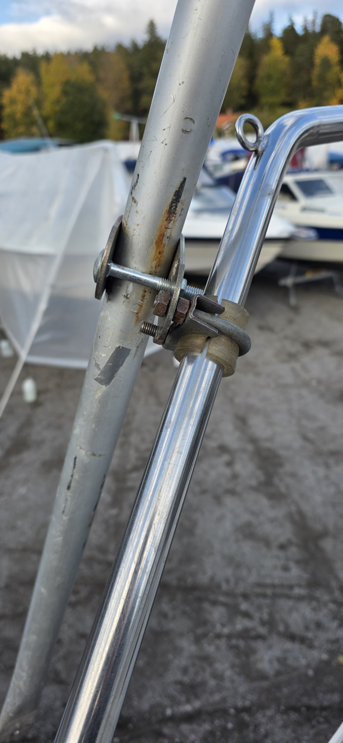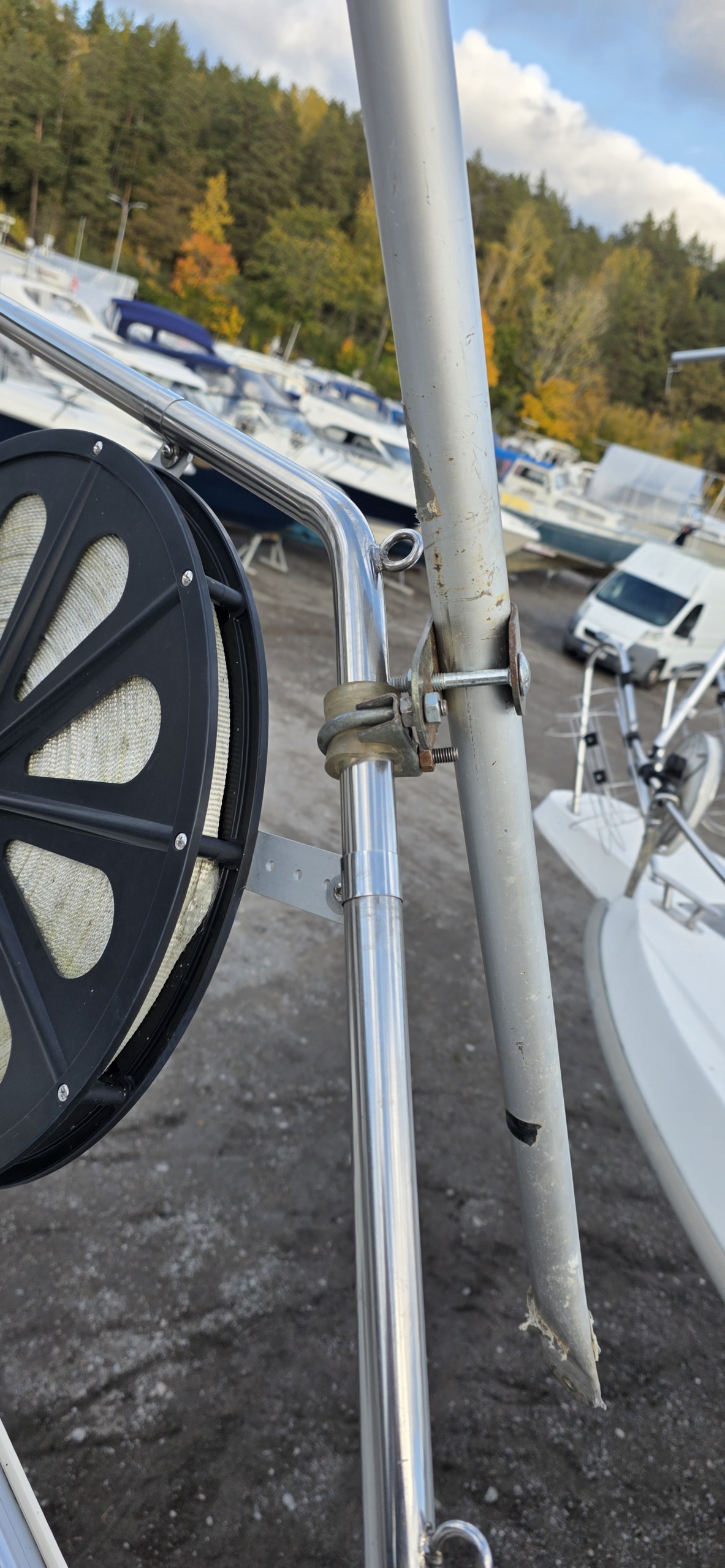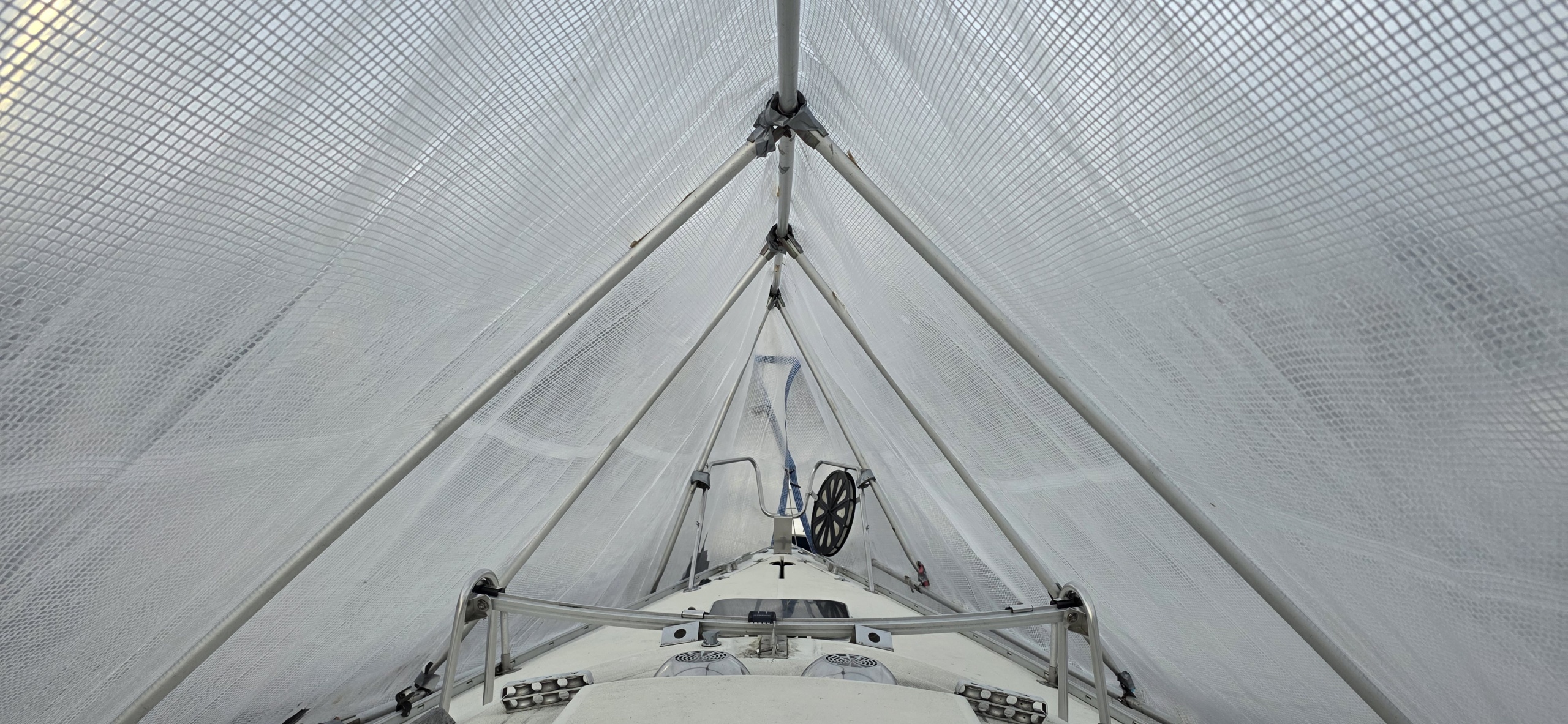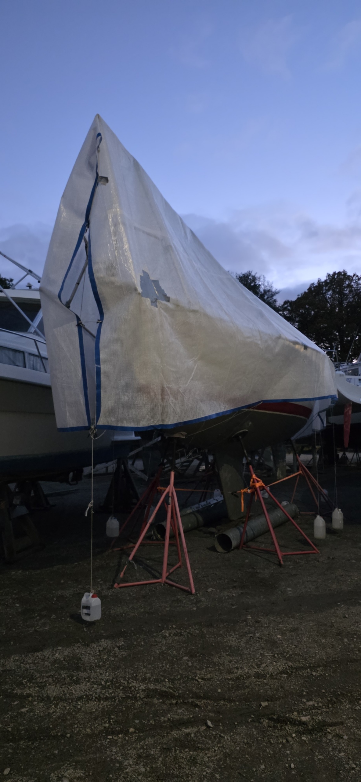 Сегодня после большого турне по мелким вещам мы с Леной около половины третьего прикатили на зимнюю стоянку для главной цели – законсервировать двигатель и натянуть тент. Лена сразу же позвонила Мартину, который подъехал где-то через полчаса на велосипеде. Я же перво-наперво проверил стойки и натянул на них ремни для страховки. После этого сразу приступил к консервации двигателя. Отсоединил шланг от насоса и прикрепил другой, чтобы качать только что купленый глюколь из ведра. В ведре развёл глюколь приблизительно 50% на 50%, что по описанию должно бы хватить на 30-градусный мороз. Когда всё было готово, я запустил двигатель, а Лена из каюты контролировала засос глюколя из ведра. Я же внизу, по настоянию Лены, одев маску, вторым ведром ловил выхлоп. Почти сразу полилась жидкость, вскоре она прибрела грязно-мутно-зелёный оттенок. Я уже словил больше половины ведра. Тогда Лена заглушила двигатель. К началу процесса консервации приехал и Мартин. Ему дали задание вытащить каркас крепления и по возможности отсортировать их. Пока я ходил сливать глюколь в отведённое дя этого место, Лена с Марином уже скрутили продольные нижние перекладины. Вернувшись, я забрался на палубу и установил поданные мне боковые стойки 2,3,4 слева и справа. Потом Мартин присоединился ко мне и мы стали примонтировать верхнюю перкладину. Работали очень слаженно и довольно быстро у нас получилась вся длина верхней перекладины, укреплённая на стойках 2, 3, 4. После этого настал один из самых время- и трудозатратных моментов – монтаж передних и задних боковых стоек. Дело в том, что у них нет фиксированного места в леерных стойках, а они крепятся на носовом и кормовом рейлинге. Лена воспользовалась изучением фотографий нашего журнала и мы закрепили эти стойки в соответствии с изображеиями. Как было сказано, на это ушло много времени и много моральных сил. После этого прступили к монтажу левой нижней боковой перкладины. В этот раз мы начали с носа. Сперва наживили крючки, но похоже зря, поскольку трубка перекладины не пролезала в них из-за болтов и гаек, поэтому приходилось и снимать и наживлять на боковые стойки по новому уже вместе с перекладиной. Если не считать пару моменто, где болты не сразу хотели попадать в дырки, всё прошло довольно гладко. Кормовой конец пришлось притягивать к стойке с некоторым усилием. Но вскоре левая сторона была готова. Мартин помог поднять нам правую перекладину, а сам уже поехал домой, перед этим заботливо наполнив нам канистры с водой для оттяжки тента.. В этот раз мы просто подготовили крюки рядом со стойками, не наживляя, и дело пошло быстрее. Ещё я вспонил прошлый лайфхак, крепить перекладину к стойкам через одну, а потом подгонять остальные. Это сильно упрстило монтаж, так что очень скоро и правая сторона была готова. Лена пошла проклеивать мочалки и смягчающие протекторы, чтобы не порвать тент, а я подтянул и закрепил перекладины в крюках, чтобы они уже никуда не выпали. Когда с этим было покончено, я начал разворачивать тент. Очень хорошо, что мы, складывая его, подписали, где находится его передняя часть. Это оченб упростило ориентацию. Вдвоём с Леной мы минут за 15 весьма успешно и ровно развесили тент, что было около половины шестого. Я пошёл развешивать канистры с водой для оттяжки. И напоследок протянул старый грота-фал, соединив разные ко